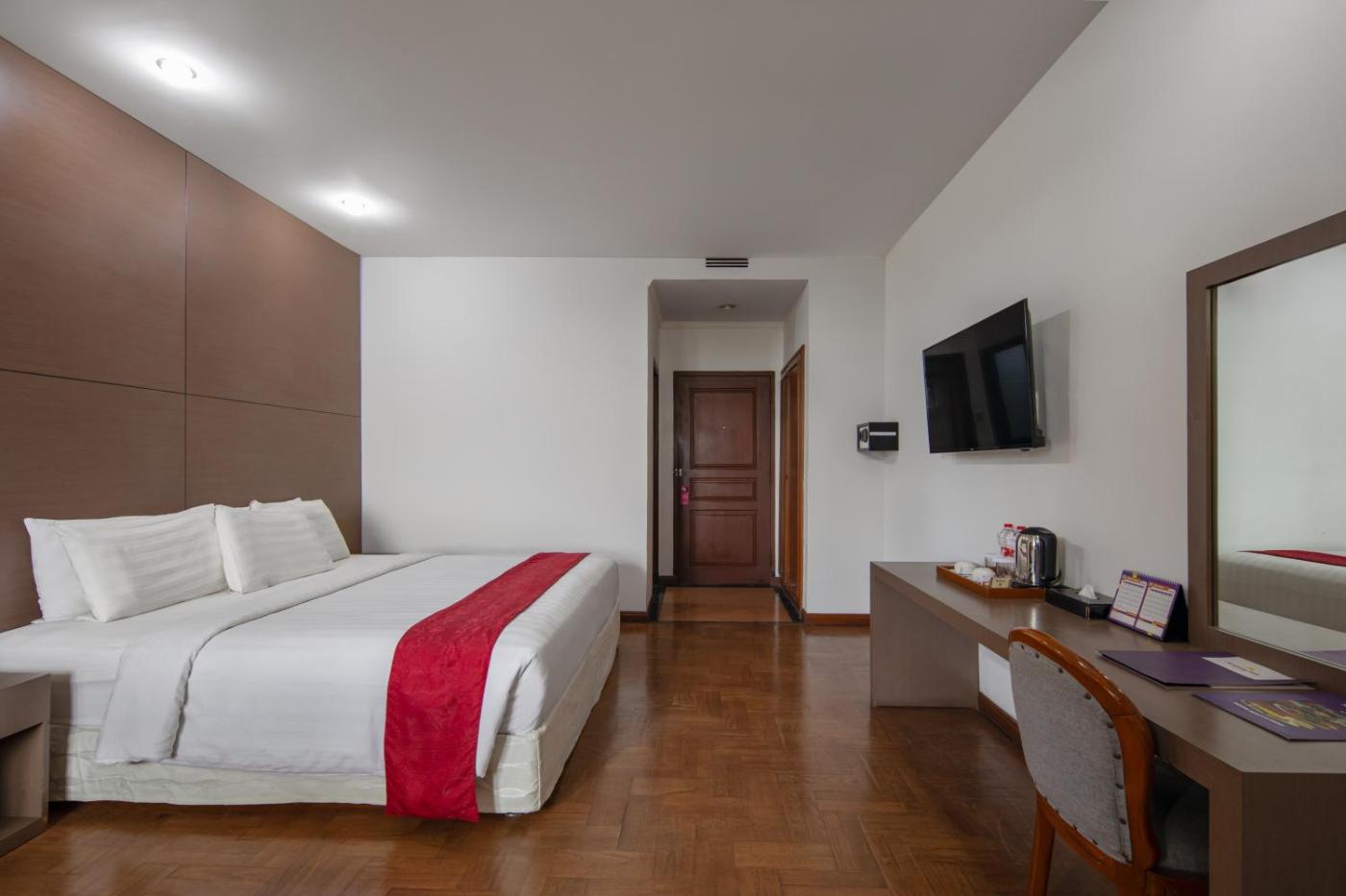 Deluxe Room. Located on the first, second and third floors, this room boasts a stunning view of Mount Sipiso-Piso, Singgalang and Barus as well surrounding expanses of greenery, garden and swimming pool. Featuring a terrace or balcony, the room offers free toiletries, a private bathroom, hair dryer, slippers and flat screen TV. The unit comes with two single or one double bed. ;