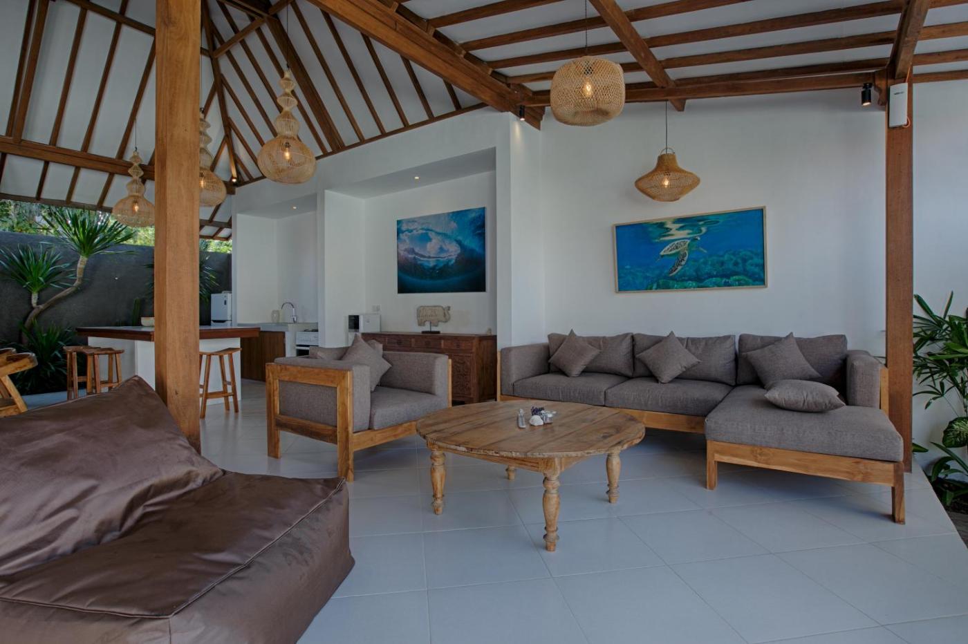 Two-Bedroom Villa. This villas special feature is the private pool. Featuring a private entrance, this air-conditioned villa comprises a kitchen, 2 bedrooms and 2 bathrooms with a shower and a hairdryer. The fully equipped kitchen features a stovetop, a refrigerator, kitchenware and an oven. The villa has a tea and coffee maker, a seating area, a dining area as well as a terrace with garden views. The unit offers 2 beds. ;